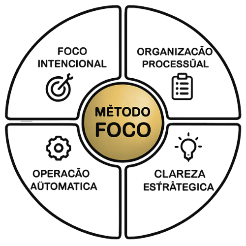 O Método FOCO foi desenhado para pessoas que exigem eficiência e resultados. Em vez de dispersar esforços, nós concentra a quatro pilares essenciais: